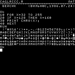 Mid-1980s home computer. The lower-case alphabet contains a number of oddities.