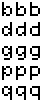 This chip was designed for Teletext applications and also saw use in home computers such as the BBC Micro. A full nine dots of height are available here, allowing for descenders that properly match the ascenders. The SAA5050 was able to interpolate these glyphs, to produce a 10×18 matrix with less jagged diagonals.